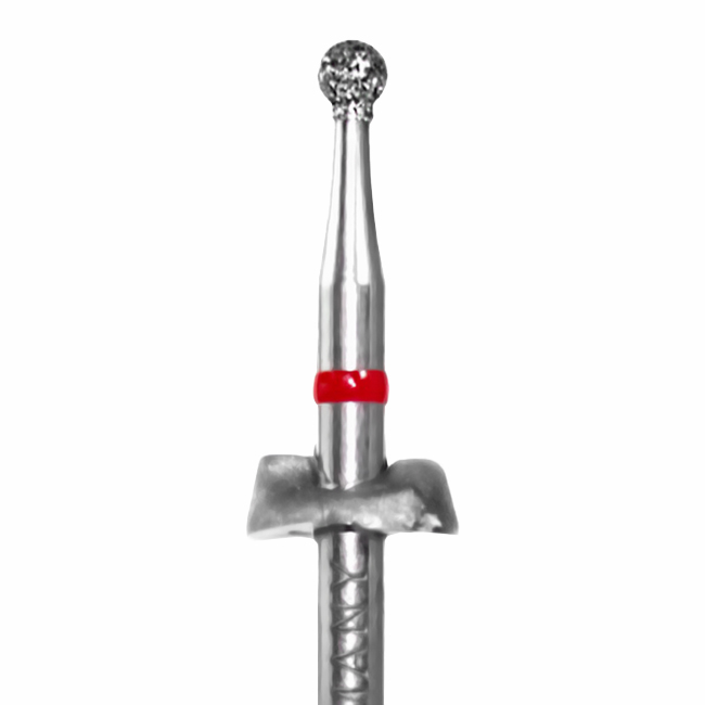 Brocas diamantadas OdontoMega com tarja Vermelha possuem granulação fina, ideal para dissilicato de lítio e outras cerâmicas.