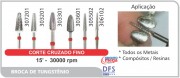As brocas ou fresas de tungstênio OdontoMega oferecem o que existe de melhor no mercado. Grande variedade de modelos, com diferentes cortes (separados por cores) e diferentes aplicações, sendo para metais, gesso, resina acrílica e até mesmo zircônia pré-sinterizada. Além disso, todas brocas DFS possuem uma hélice, responsável por manter a poeira dos desgastes para fora do motor. As brocas DFS vêm com o código impresso a laser no mandril, o que facilita a identificação, mesmo após a embalagem ser descartada.