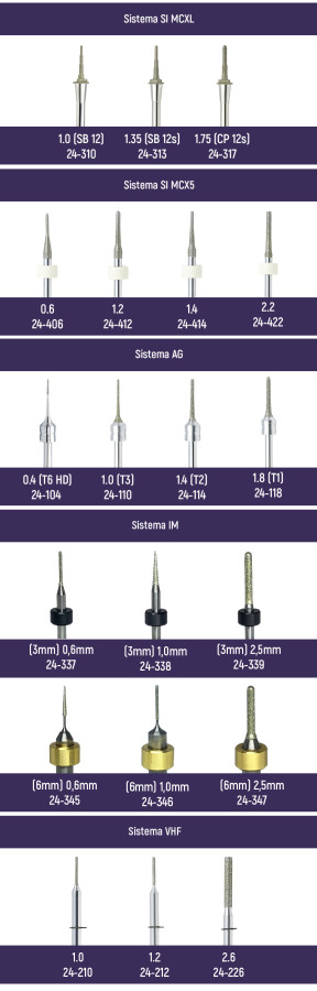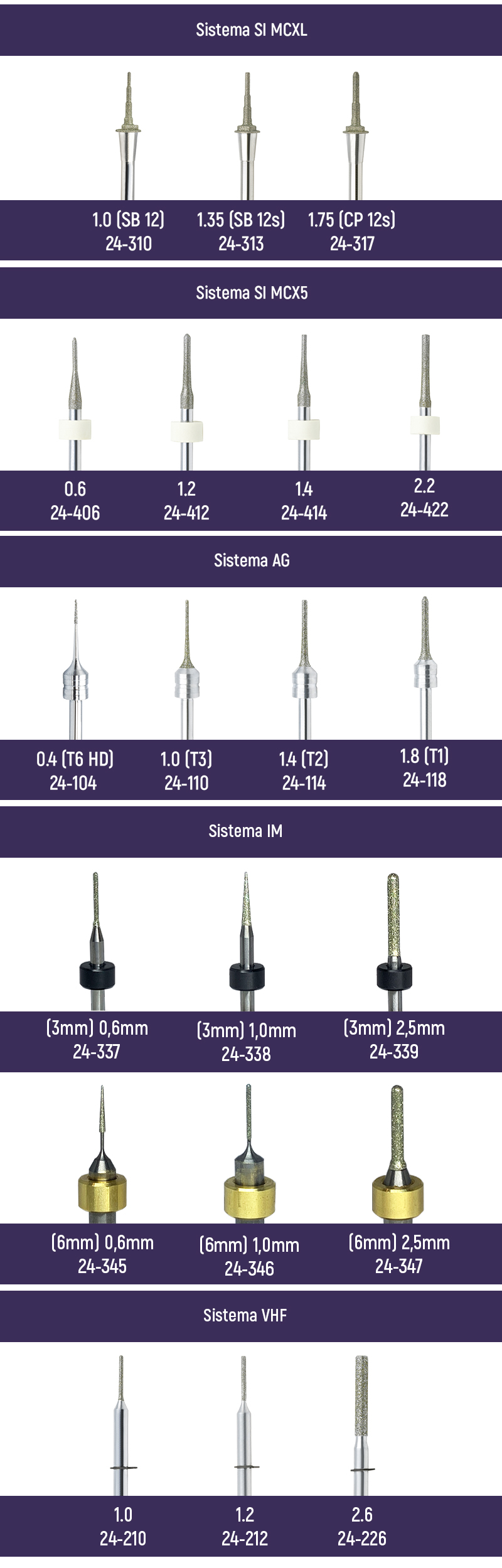 Altíssima durabilidade em fresas CAD/CAM para cerâmicas e fresagens irrigadas. Para diversos sistemas: