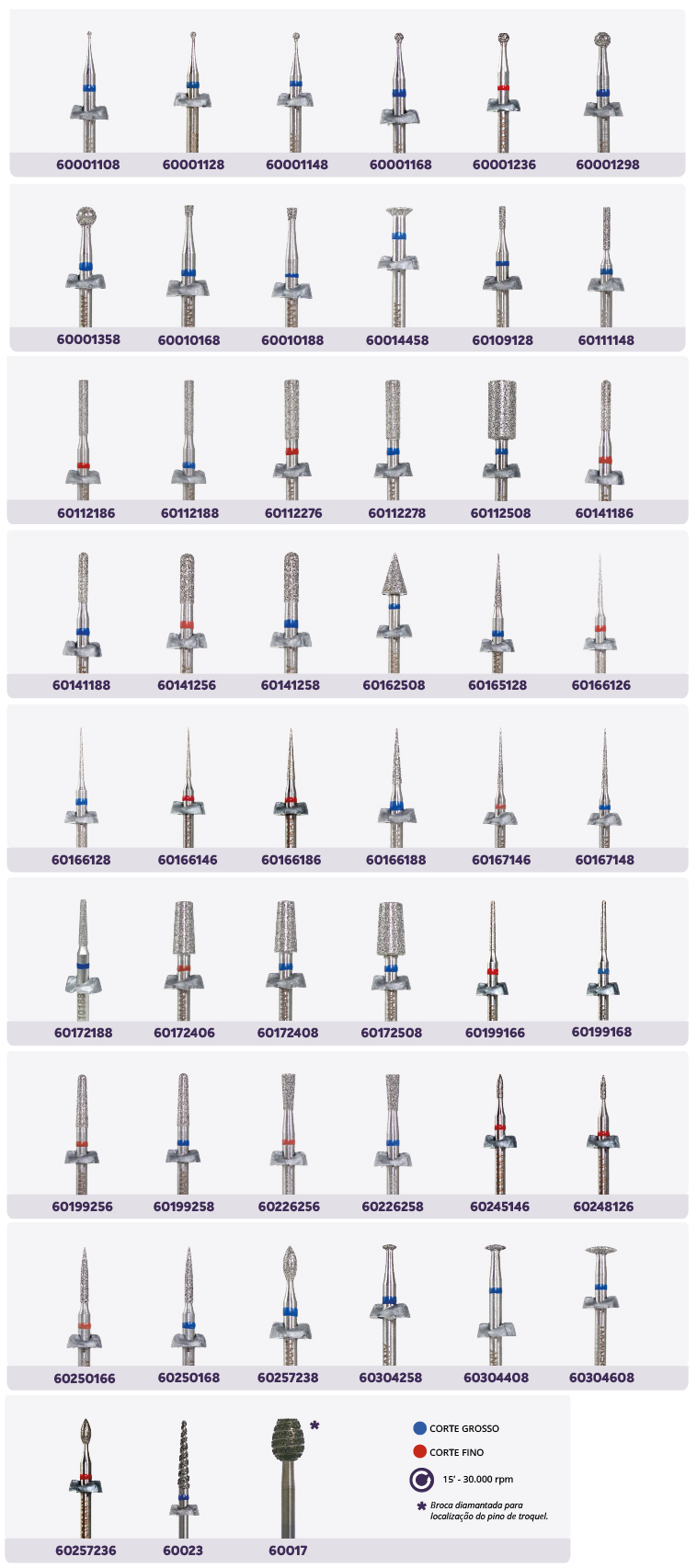 Todas brocas DFS possuem uma hélice, responsável por manter a poeira dos desgastes para fora do motor. As brocas DFS vêm com o código impresso a laser no mandril, o que facilita a identificação, mesmo após a embalagem ser descartada.