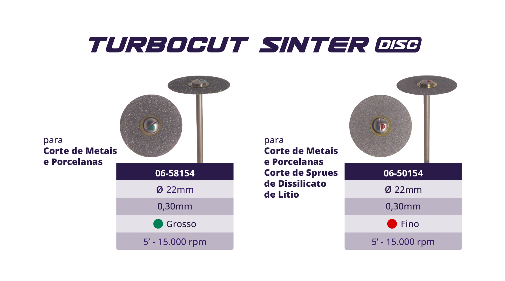 Discos Sinterizados Turbocut de alta durabilidade.
