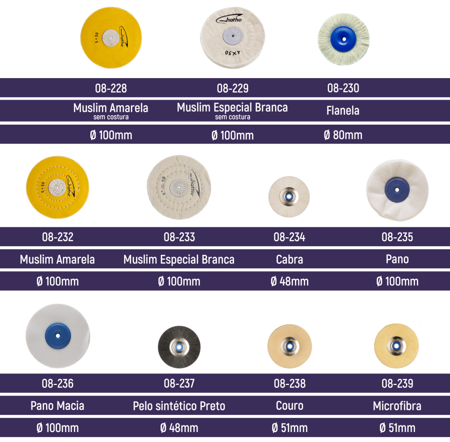 Para polimento de diversos materiais, confira abaixo todos os modelos disponíveis: