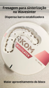 Sinterização rápida sem bloco específico, compatível com todos do mercado devido aos efeitos da micro-ondas. O WAVESINTER também garante estabilidade de cor mesmo em sinterizações ultra rápidas — uma demanda crítica para técnicos e laboratórios que buscam perfeccionismo estético.